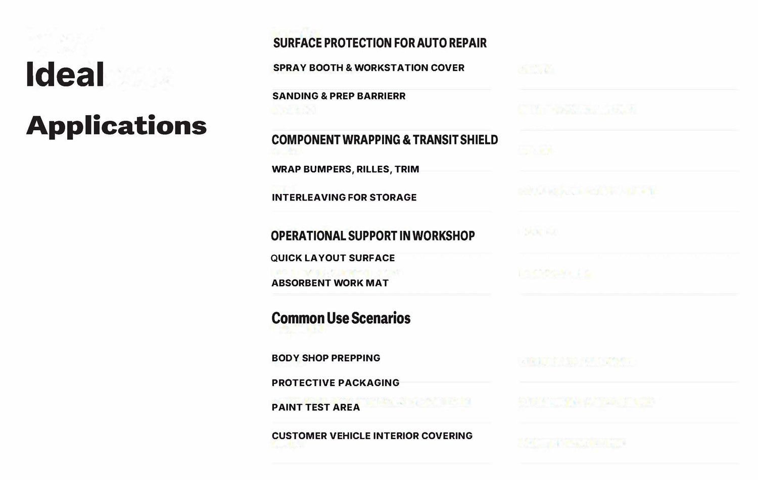 • Efficient Masking Protection: Ideal for masking in paint jobs, effectively preventing paint, primer, and clear coat penetration, protecting vehicle surfaces from contamination.